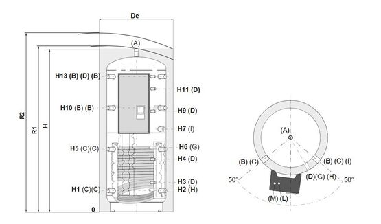 - Échangeur de chaleur ECS en inox fixé sur la paroi externe du ballon