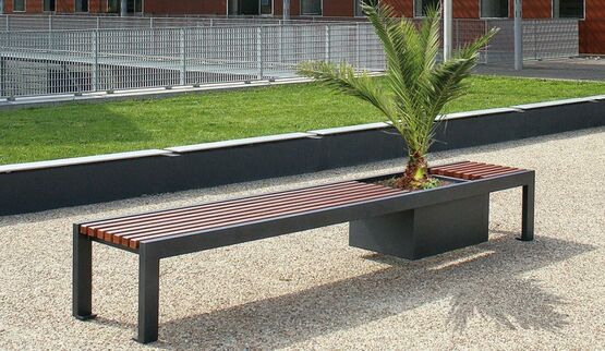 Ces bancs urbains sont dotés d’un profil de l’assise souple rappelant les bancs publics des années 1900, contrastés par un piètement rigide plus contemporain.