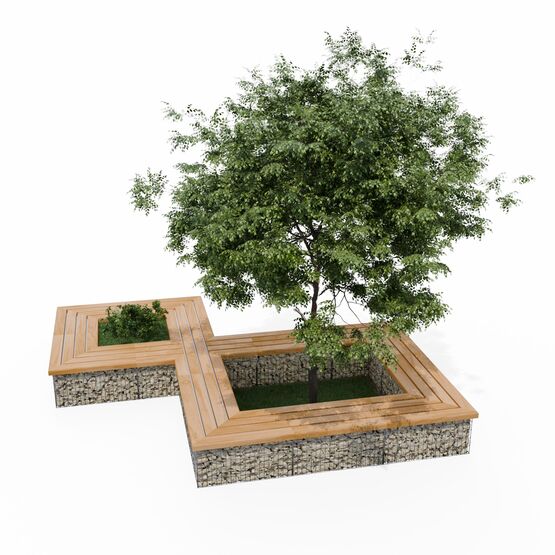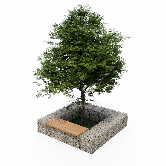 Banc entourage d'arbre carré en gabions | Entourage d'arbres