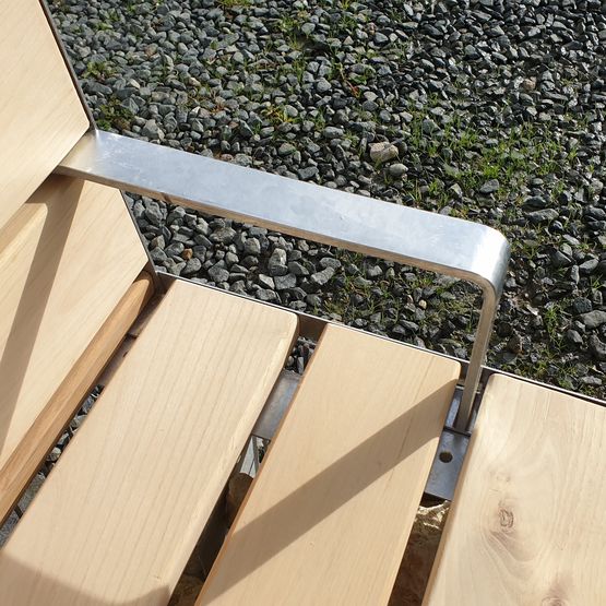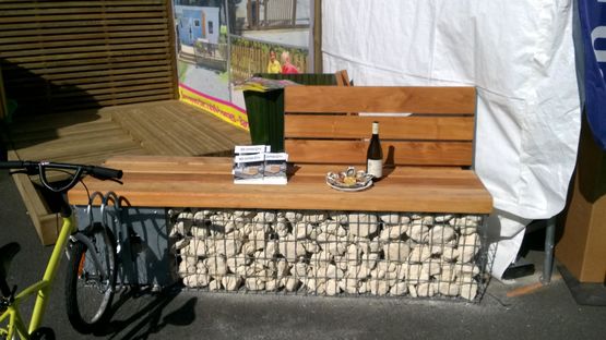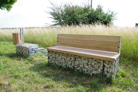 Conçus et fabriqués en Nouvelle Aquitaine, les bancs publics avec dossier sont équipés d'une lame de recouvrement pour protéger l'utilisateur des parties saillantes du gabion.