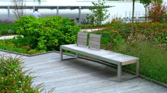 Banc public design contemporain inox-bois avec option dossiers | BASKOP