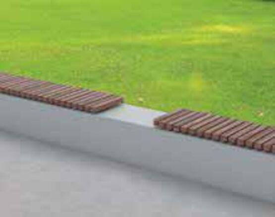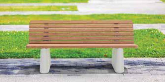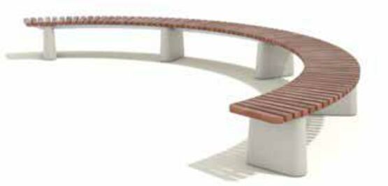 La base du banc est constituée d'un solide béton, disponible en deux teintes, relié par des lattes en bois dur ou en bois modifié thermiquement. Tous les éléments auxiliaires en acier sont galvanisés ou en acier inoxydable, assurant ainsi leur durabilité.