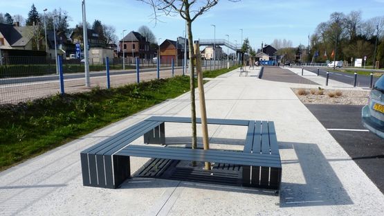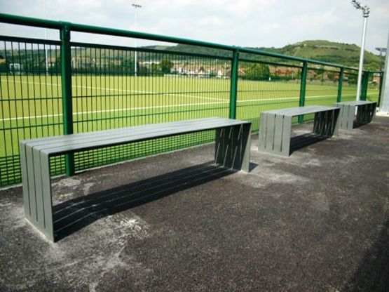 4. Personnalisation et esthétique : Choix de couleurs RAL et possibilité de personnalisation avec un dossier et des accoudoirs, le design épuré du banc s'accorde avec les tendances architecturales modernes.