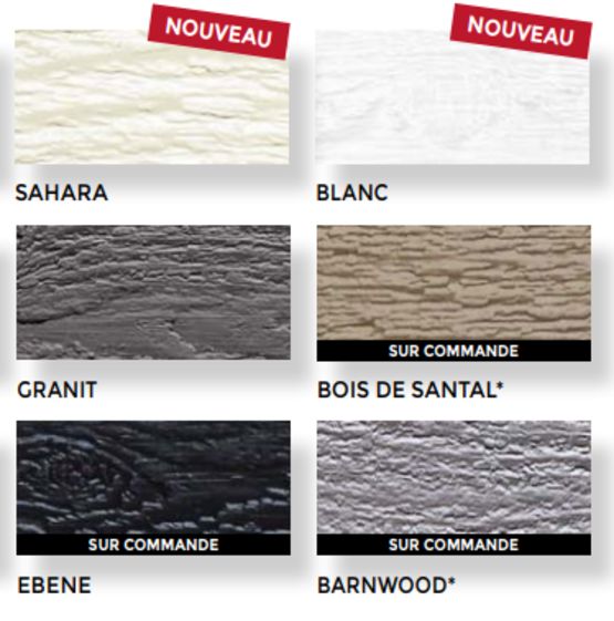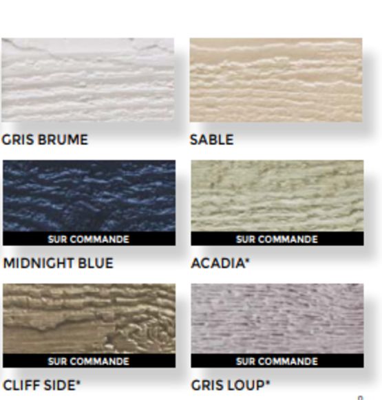 | Épaisseur : | 8.9 mm - Profil Ced’r-Tex ; 10.2 mm - Profils Ridgewood et VStyle |