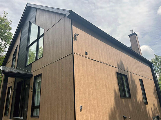 Le bardage CanExel VStyle est un revêtement extérieur en fibres de bois conçu pour offrir une finition élégante et durable aux façades. Son profil en clin confère une esthétique moderne et épurée, s'adaptant aussi bien aux constructions neuves qu'aux projets de rénovation.
