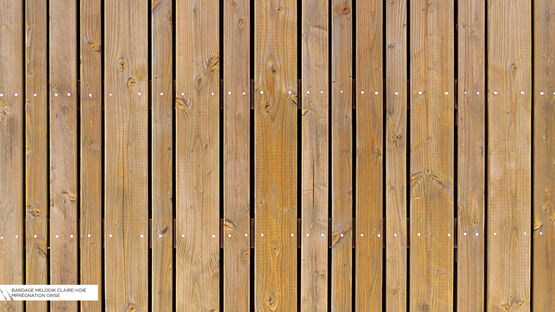 Les bardages MELODIK CLAIRE-VOIE sont usinés à partir de bois massif de Douglas français. Cette gamme se démarque par ses 5 lames différentes interchangeables créant une infinité de possibilités. Les bardages MELODIK CLAIRE-VOIE sont proposés en grise ou marron par imprégnation, conférant au Douglas traité une durabilité correspondant à la classe d’emploi 3.2. Les lames sont en bois massif ou aboutées avec aspect de surface raboté pour les solutions d’imprégnation colorée.