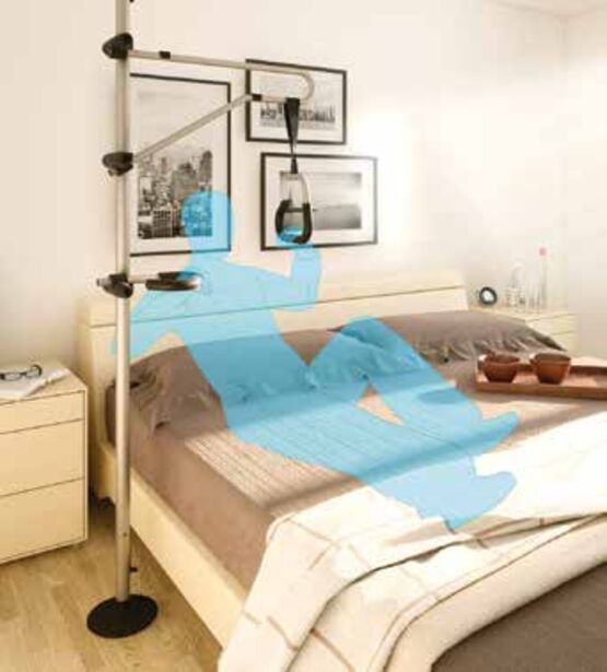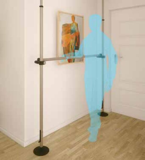 La barre GRIPO est testée et approuvée en conformément à la norme EN 12182 : 2012. Elle est fabriquée en aluminium et en plastique, et est conçue pour être suspendue entre le sol et le plafond.