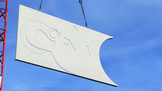 Bas relief monumental en béton poli préfabriqué | Panneau béton poli