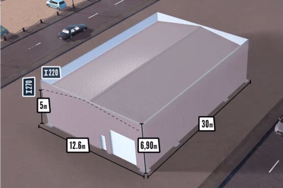 Bâtiment acrotère isolé 380m² + porte sectionnelle & portillon