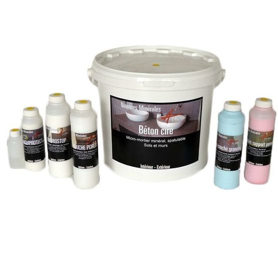 Cette gamme de bétons cirés est présentée sous forme de kits composés d'un primaire adapté à la nature du support, d’une poudre et d’une résine colorée à mélanger, d'un bouche pore et d'une finition mate ou satinée selon l'effet de matière recherché.