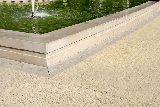 Son aspect, proche du sable, est obtenu par micro-désactivation de la surface laissant