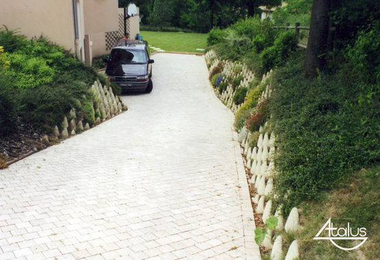 | Mise en oeuvre : | Pose en quinconce avec un espace de 19 cm entre les atalus sur un béton de propreté. |
