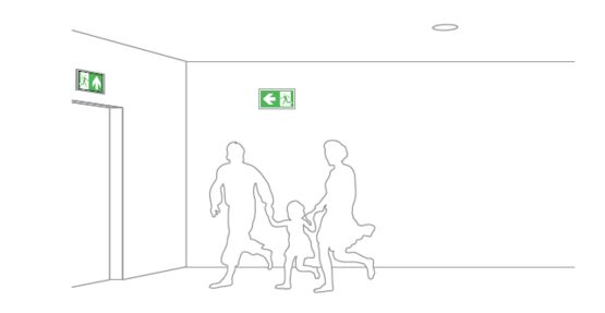 Cet appareil d’éclairage de secours protège les utilisateurs des bâtiments en les dirigeant vers une sortie de secours, en cas de détection d'incendie ou d’autres dangers.
