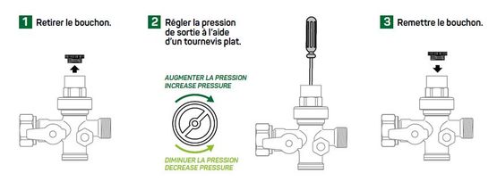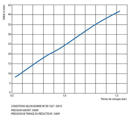 | Caractéristiques techniques : | - Pression de sortie : de 1,5 à 6 bar - Préréglage : 3 bar +/- 0,1 bar (sous 8 bar en amont) |