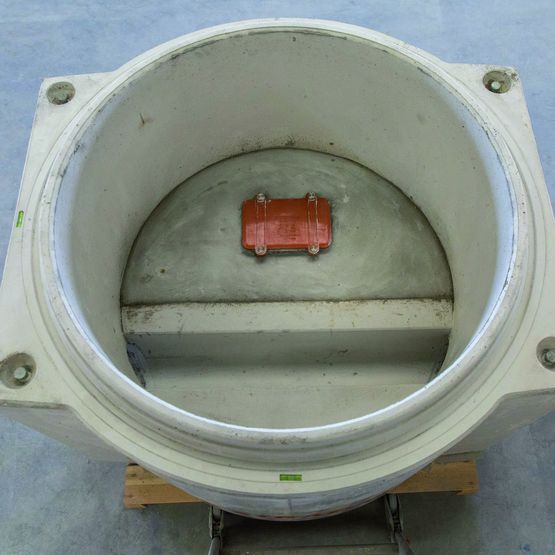 | Mise en oeuvre : | réglage rehausse et couvercle sur élément de fond via deux ergots assurant le centrage et le blocage des éléments ; découpe spécifique pour passage du dauphin |