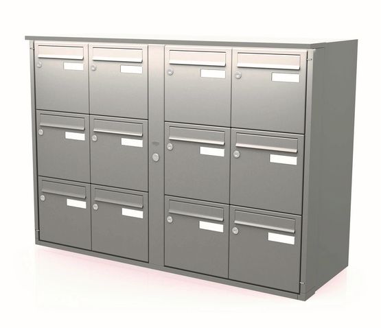 - Ensemble intérieur/extérieur de 4 à 30 boites aux lettres à fixation murale, sur muret, encastrée, sur pieds, simple face ou double face