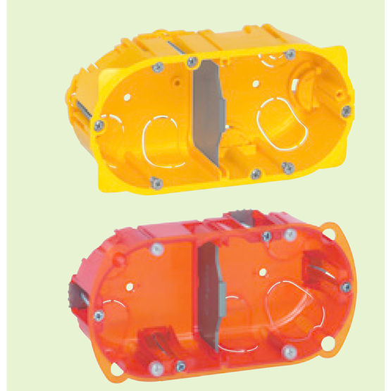 | Caractéristiques techniques : | Boîtes multipostes décloisonnées en cloisons sèches et multimatériaux ; boîtes 1 poste maçonnerie associables pour réaliser des boîtes multipostes. |