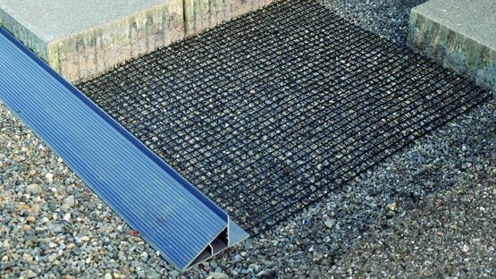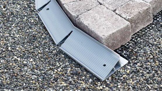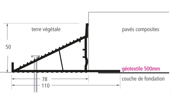 2. Facilité d'installation : Ce profil de bordure ne nécessite pas l'utilisation de béton pour sa pose. Son filet large soudé s'encastre dans le gravillon, ce qui permet une fixation rapide et immédiate, réduisant le temps de mise en œuvre.