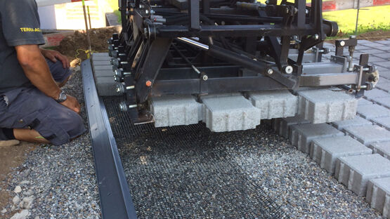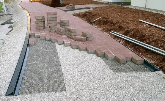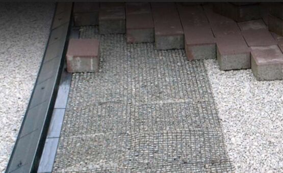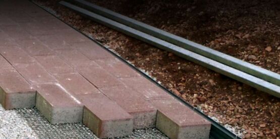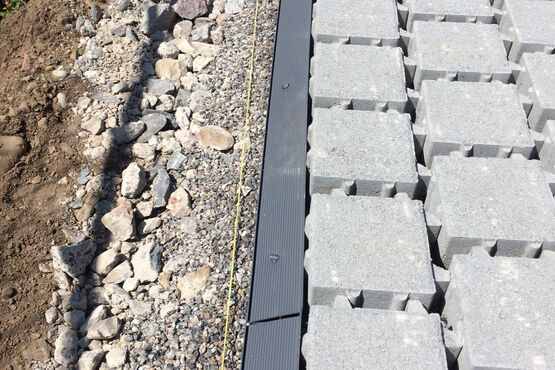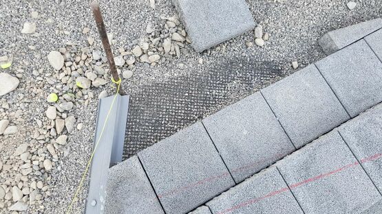 | Mise en oeuvre : | - Créer le lit de gravillon ou de sable - Positionner le profil steinfix au bon endroit - Poser les dalles sur le filet - Dès que les dalles reposent sur le filet, le profil est inamovible - Jointoyer avec du sable et compacter le revêtement jusqu’au bord |