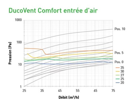 La DucoVent Comfort est la bouche d'aération VMC pour les projets de nouvelles constructions mettant l’accent à la fois sur l’esthétique et la facilité de calibrage. L’alimentation et l’extraction s’effectuent à l’aide de la même bouche, avec un débit maximal de 75 m³/h.