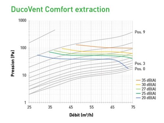 | Débit : | 75 m³/h - Débit maximal entrée d'air / Débit maximal extraction |