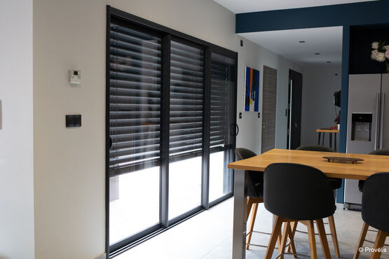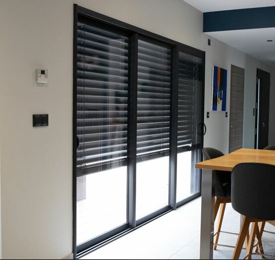 2. Régulation de la lumière ajustable : Les lamelles orientables permettent un contrôle précis de la luminosité, offrant ainsi la possibilité de créer des ambiances intérieures variées en fonction des besoins et des heures de la journée.