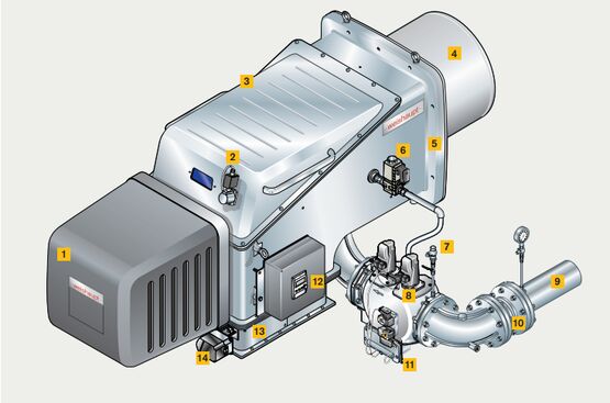 Leur conception modulaire permet de les adapter à de nombreuses utilisations spécifiques. Cette série de brûleurs se caractérise par une très large plage de puissance allant de 200 à 32.000 kW. »