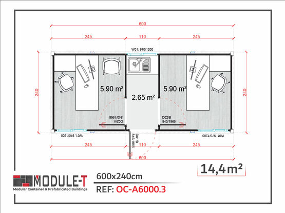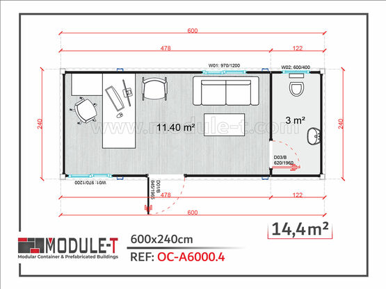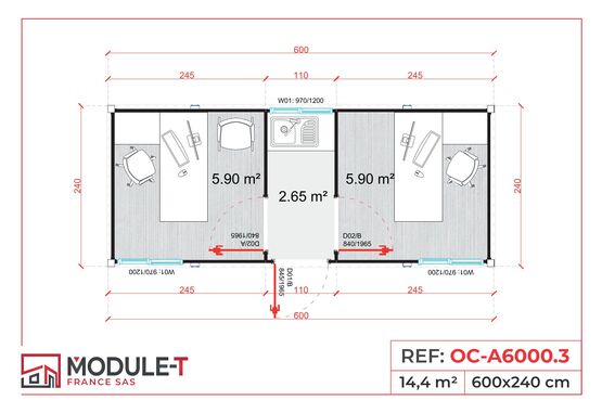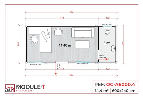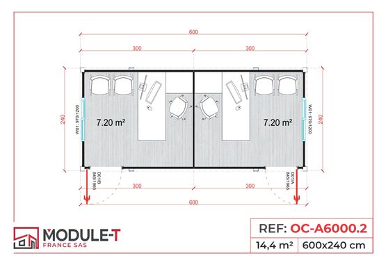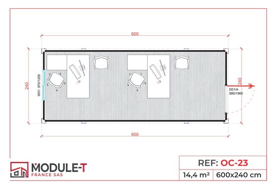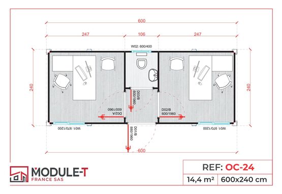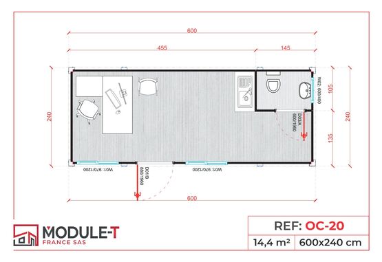 NEUF | Bungalow de chantier | Baraque de chantier | Base vie chantier | Abri de chantier | MODULE T FRANCE