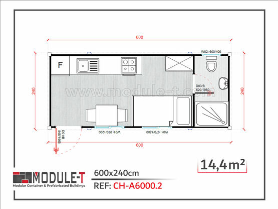 De dimensions standard de 6×2,4 m (14,4 m²) ou 6×4,8 m (28,8 m²), ce kit est fourni avec les menuiseries et quelques options telles que : le PVC et l’aluminium.
