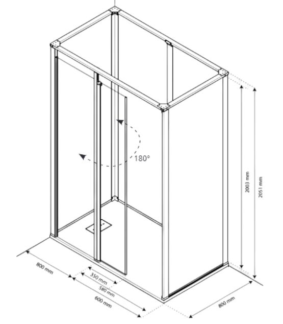 Avec des profilés en aluminium poli, cet espace allie robustesse, résistance et longévité. Il dispose de panneaux latéraux et de fond en contreplaqué marin, ainsi que d'une paroi Larenco ou Level Best, avec un segment latéral fixe de 800 mm et un segment de 350 mm, pivotant à 180°.