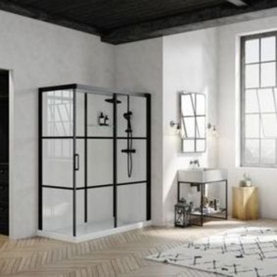 1. Design moderne et personnalisable: Ce produit propose deux finitions attractives, noir grainé ou aluminium laqué gris clair, pour s'adapter à divers styles d'intérieurs. Le design de style verrière des portes coulissantes ajoute une touche contemporaine et sophistiquée à n'importe quelle salle de bains.