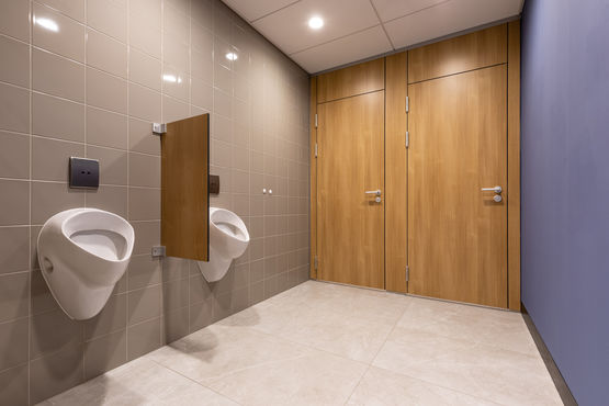 - Options et accessoires : barre, distributeurs, séparateurs d'urinoirs, bancs, poubelles hygiéniques, pictogramme, patères