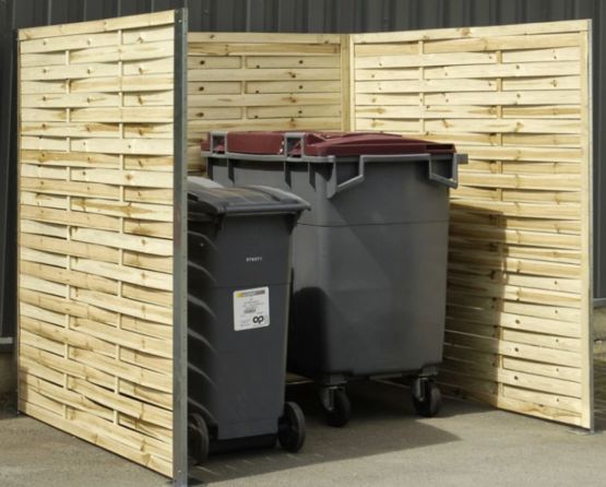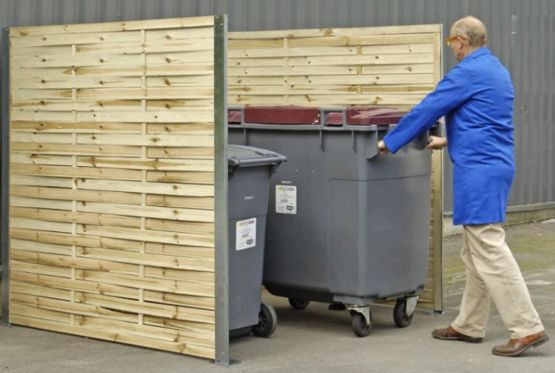Cache conteneur poubelle en panneaux bois tressé