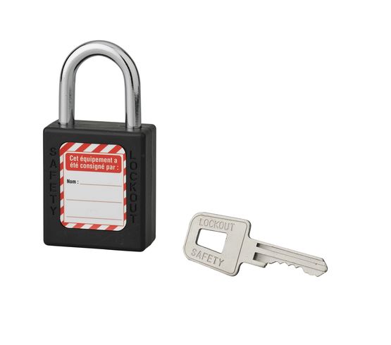Cadenas de consignation LOTO Lockout Tagout 40 mm anse acier Ø 6 x 25 mm noir