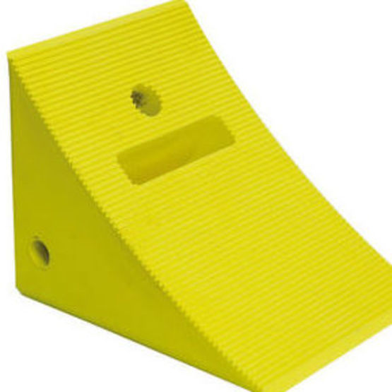 Avec des dimensions de 250 X 175 x 190 mm, la cale d’immobilisation de véhicules légers ou de poids lourds résistante aux UV et à la chaleur, offre une forte adhérence au sol même gravillonné et sous le pneu.