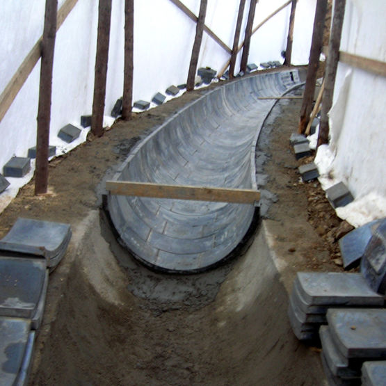 EUTIT fabrique aussi les mortiers, colles et joints spécifiques pour la pose de ces éléments en basalte fondu.