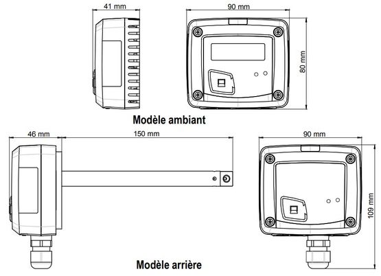 | Indice de protection IP : | IP 20 - modèle ambiant ; IP 65 - modèle arrière |