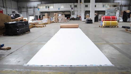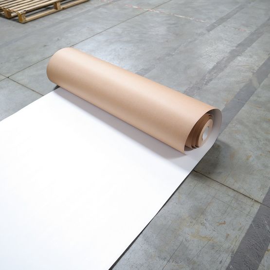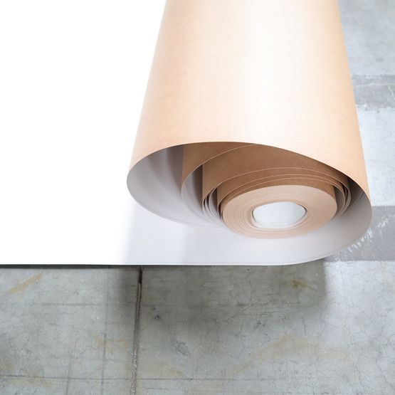 Une face blanche transparente pour un site lumineux (face avec film LDPE blanc) et l'autre en carton souple pour votre sol.