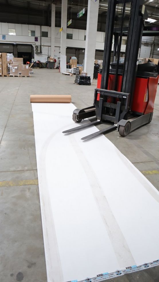 Une fois fixé à l'aide de nos adhésifs de fixation KINGPRO, il offre une protection contre le trafic intense et les chariots élévateurs.