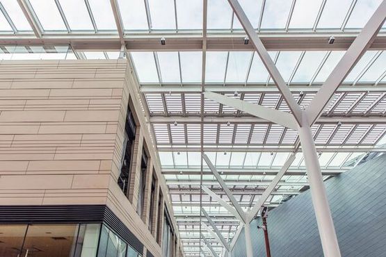 Les panneaux alvéolaires sont d’une largeur max. de 2 000 m et d’une longueur pouvant atteindre 3 600 mm, en transparent, opale et gris. D’autres part, les lames sont réalisées au choix en polycarbonate, verre ou aluminium.