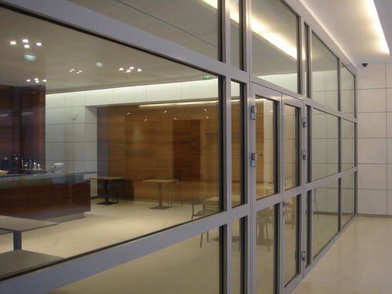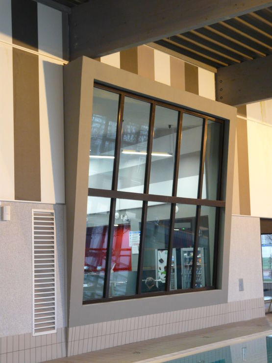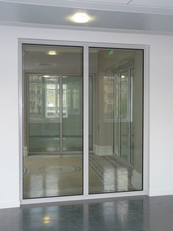 | Options : | -Recoupements par montants ou traverses intermédiaires -Assemblage des éléments par manchonnage (châssis fixes, imposte, châssis latéraux et allèges) -Drainage des feuillures en extérieur et milieu humide -Réalisation de châssis avec vitrages de forme (triangles, trapèzes) -Montage des éléments en angle à 90 ou à facettes -Dans le care d'un avis de chantier EFECTIS, possibilité de réaliser des châssis cintrés Affaiblissement acoustique suivant PV réalisé au CSTB |