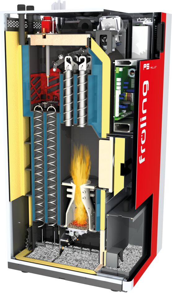 | Options : | système de remplissage granulés, dépoussiérage, variosilo ou boîte à granulés, taupe d'aspiration, application de gestion à distance (Froling Connect) |