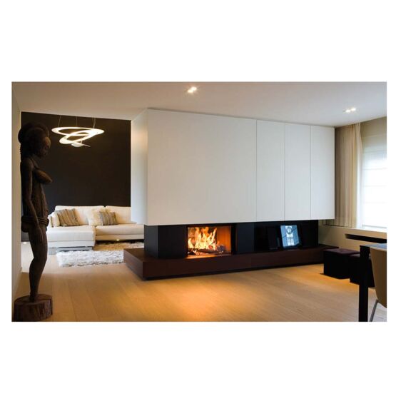 3. Vision panoramique du feu : Le foyer vitré offre une vue dégagée et spectaculaire sur les flammes, créant un point focal chaleureux dans tout intérieur.