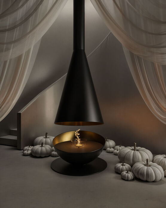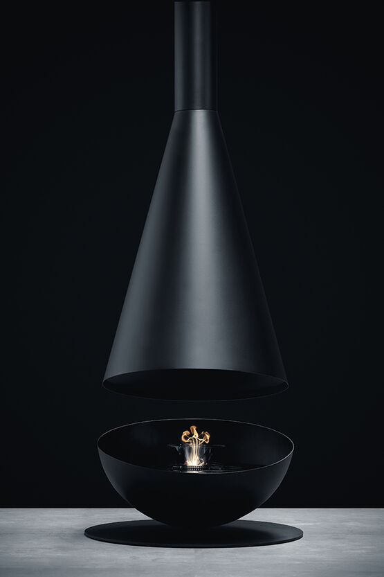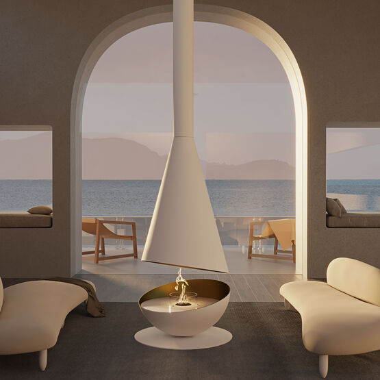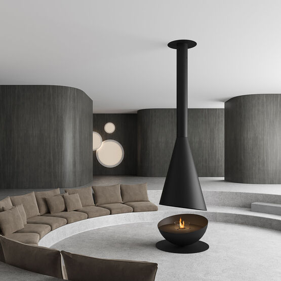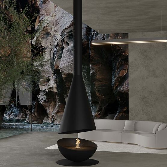 Première cheminée suspendue au monde équipée d’un brûleur électronique au bioéthanol, elle se distingue par sa rotation à 360°, permettant d’orienter la flamme selon les envies et de créer une atmosphère chaleureuse et enveloppante.