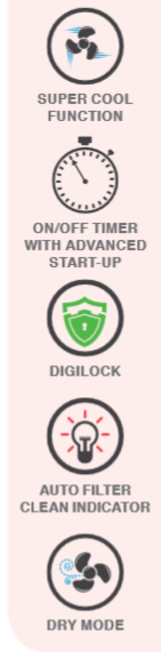 4. Fonctionnalités avancées: Équipé de fonctionnalités pratiques comme la serrure numérique Digilock, le redémarrage automatique et la fonction "ultra rafraîchissant", ce climatiseur assure commodité et performance continue.