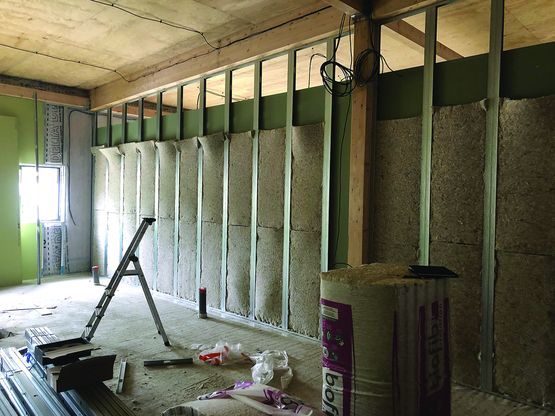 Cloison isolante à panneau biosourcé pris entre deux plaques de plâtre | Prégyroc Air et Biofib Trio