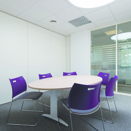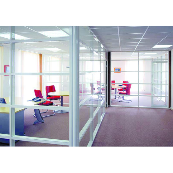 Cette cloison aluminium amovible bi-bloc utilise un système permettant d'accrocher des panneaux de remplissage à chants plaqués, donnant un aspect joint creux sur toute la hauteur de la cloison. Destinée aux séparations de bureaux et de murs de refend. Composée d'isolant en laine de verre de 45 mm d'épaisseur, de huisserie ronde ou carrée et de portes (porte bois stratifié, porte cadre aluminium pleine ou vitrée, porte verre, etc). Remplissage par panneaux mélaminés de 18 ou 19 mm d'épaisseur.