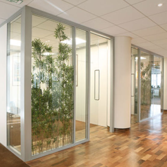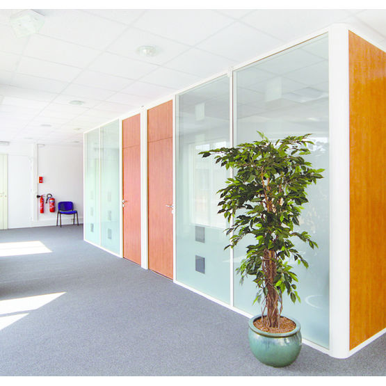 Cloison séparative vitrée coupe-feu en profilés de bois très fins à ouvrants | SlimTeq