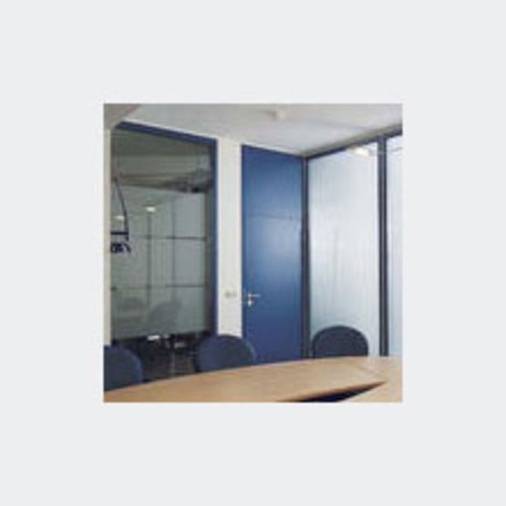 - Cloison vitrée toute hauteur à ossature tubulaire en aluminium, montée bord à bord sans montants intermédiaires