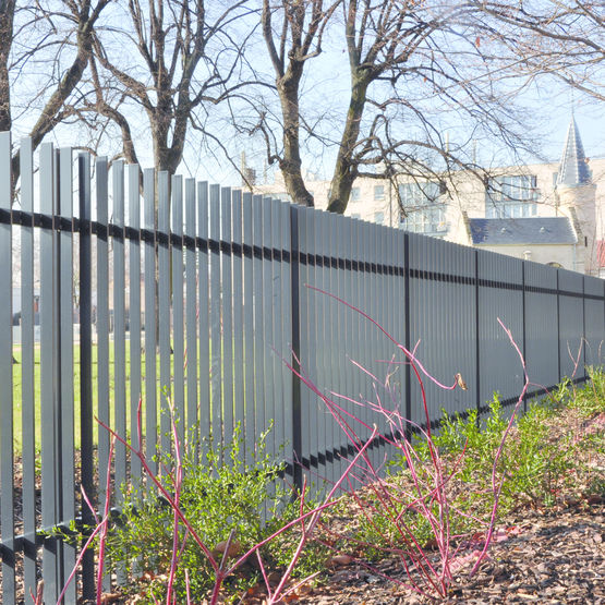 La hauteur de la clôture varie entre 125 et 2 130 mm au maximum et les couleurs disponibles en standard sont le gris 7 016, le blanc 9 016, et le noir 2 100 sablé.